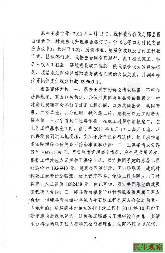 湖北省郧县王洪宇的民事判决书