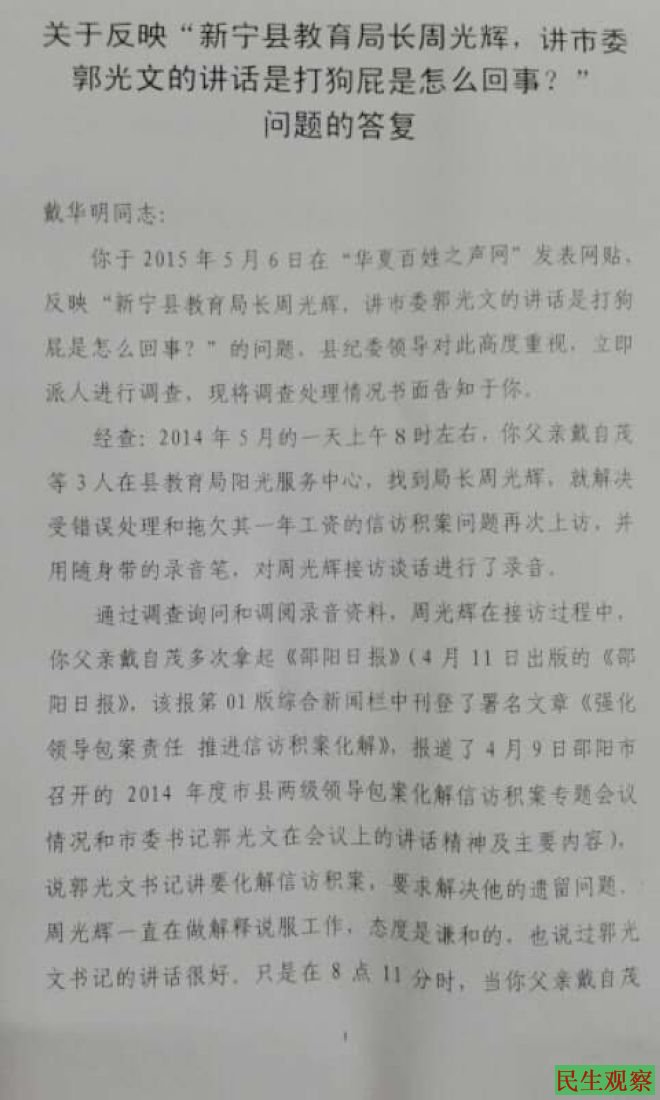 教育局长称市委书记讲话是“打狗屁” 网民举报纪委作答