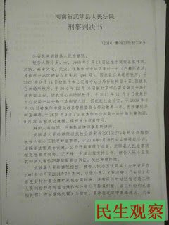 [访民之声2016/12/28消息] 12月12日,河南焦作市访民张小玉被河南省武陟县人民法院一审以寻衅滋事罪判处有期徒刑3年6个月。