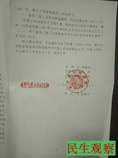 本网人权观察员从张小玉家属处获悉,张小玉不服上述处罚多年坚持控告,并决定对此判决提起上诉。