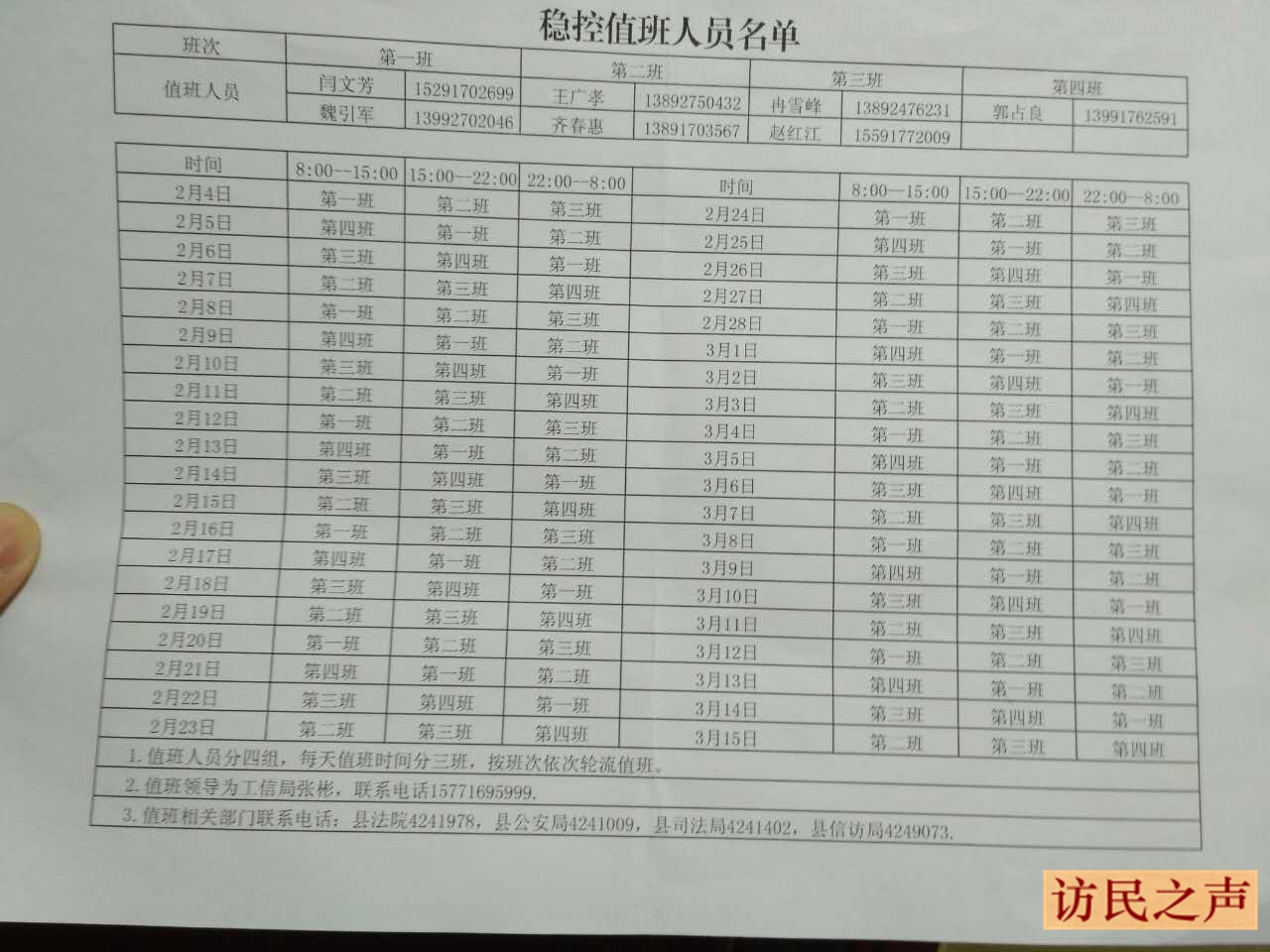 拦截信访群众的事不只是发生在上海,陕西省宝鸡市千阳县访民吕动力,2月4日即遭到政府安排人员看管稳控的宾馆,吕动力把看管他的人员值班表发到网络上后,网友纷纷打电话给参与稳控人员,迫于压力,3天后吕动力获释回家。今晚在进京的火车上,又遭到千阳县城关派出所副所长和两名警员拦截, 目前其已被带回千阳县,稳控与千阳宾馆后楼305房间。
