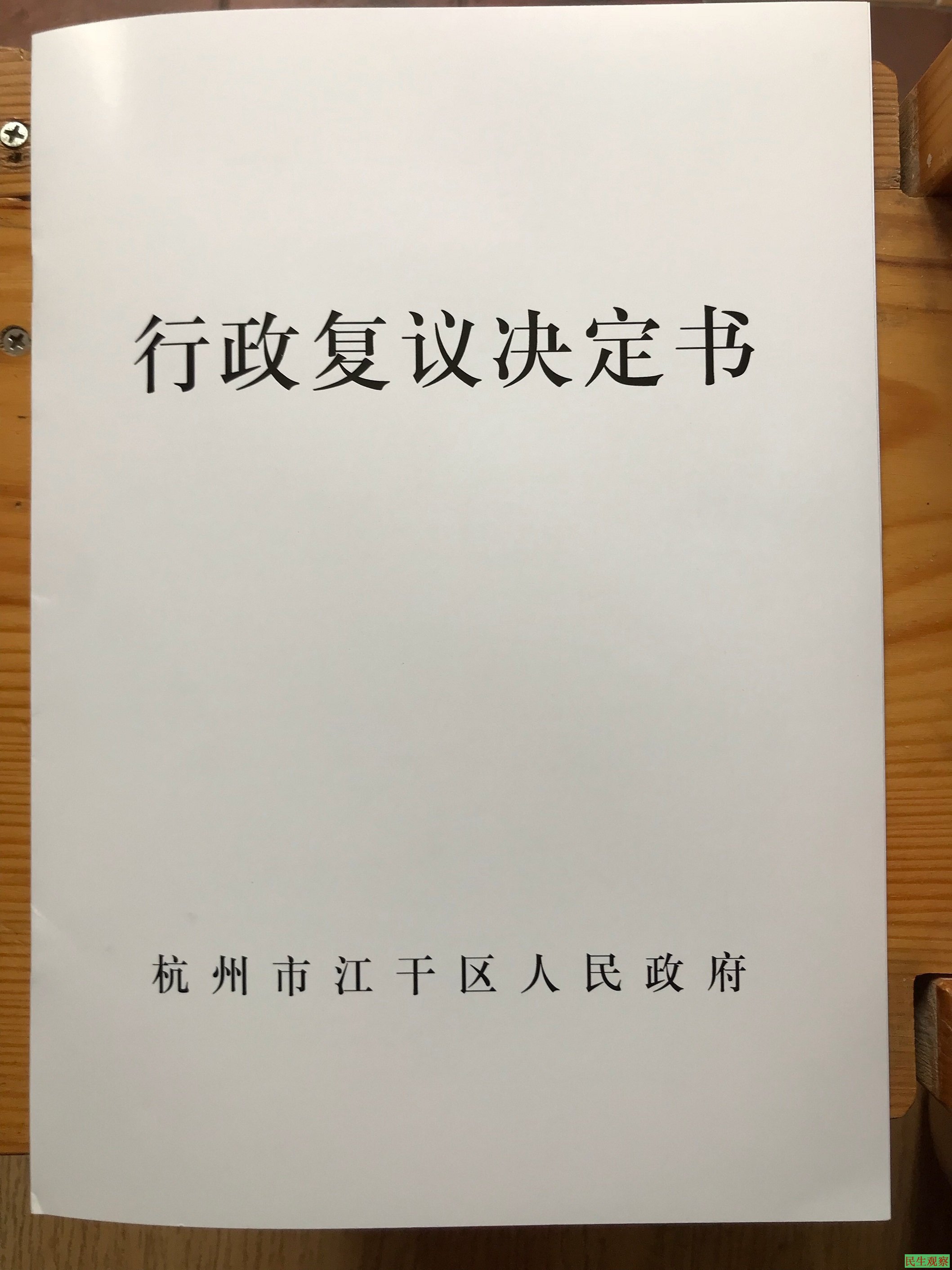 1.浙江省杭州市江干区人民政府《行政复议决定书》(江政复[2018]11号)复印件1份