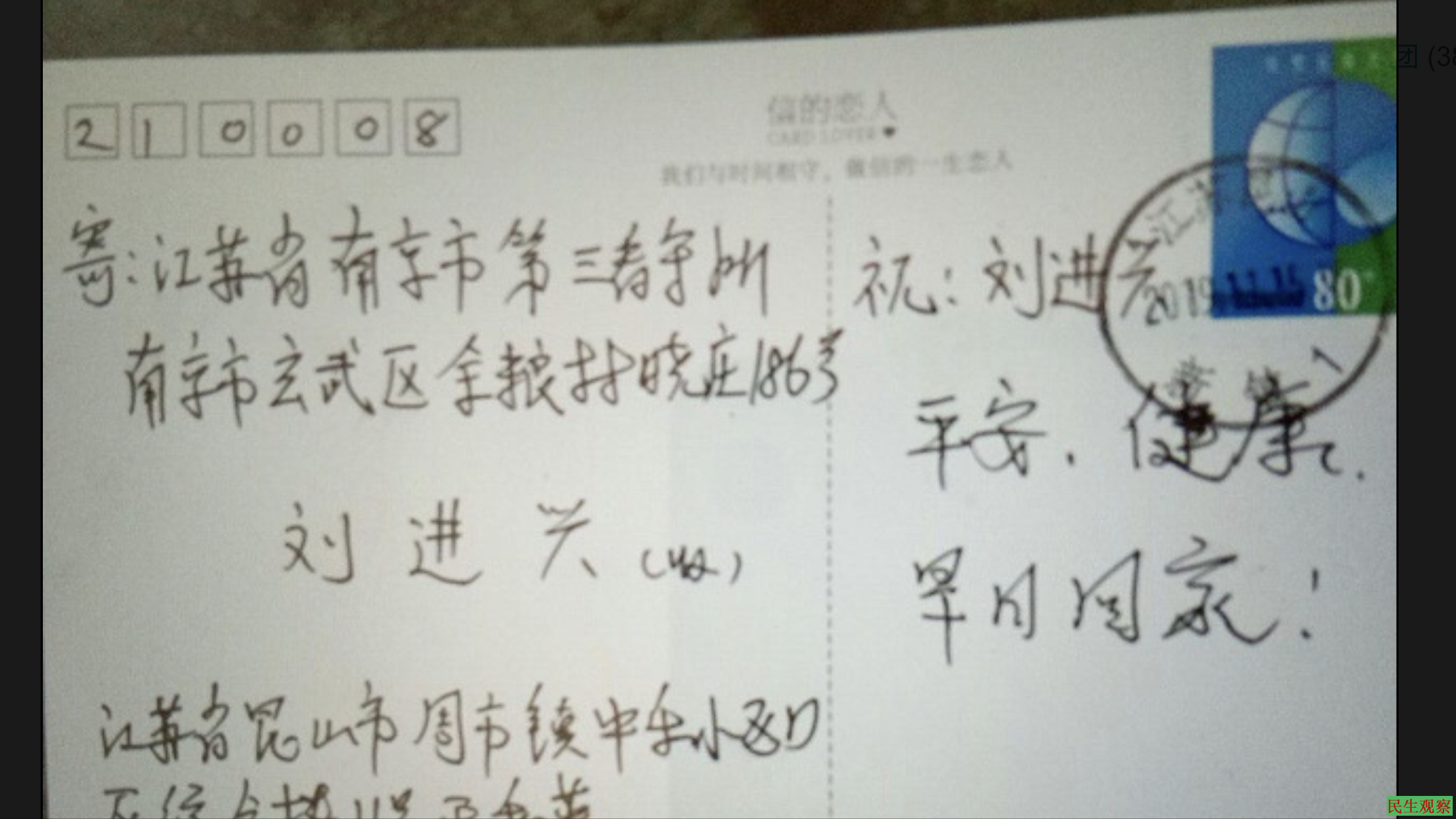 临分手时我对她讲:“过几天我就回昆山了,等我抽空就去南京探望追魂先生,然后我再写信给他,告诉他,你和孩子都在等他回家!”15日我寄给追魂的信明信片不知道他是否能收到。