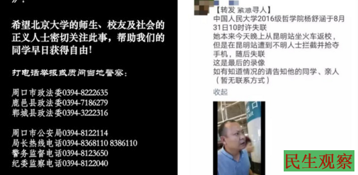 还有,9月1日,声援团成员北大学子展振振,也发出消息称自己被户籍地警方软禁了。