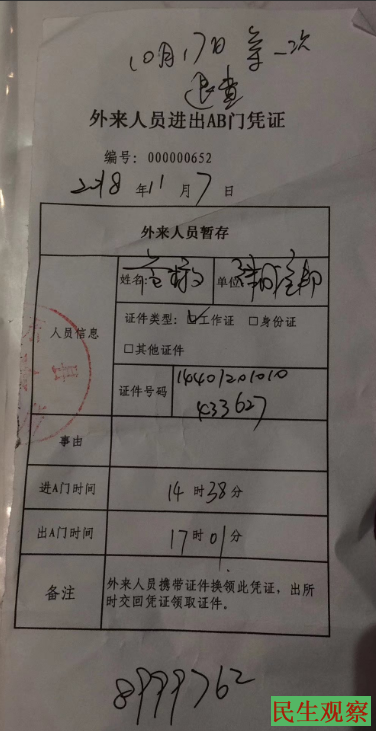 【民生观察2018年11月14日消息】本网获悉,今年6月湖南常宁公民占友超,因在惠州纪念六四被当局以寻衅滋事罪关进惠东县看守所,其代理律师范标文多次前往会见遭拒。之后经过多方协调和努力,近日范标文律师终于得以会见当事人。