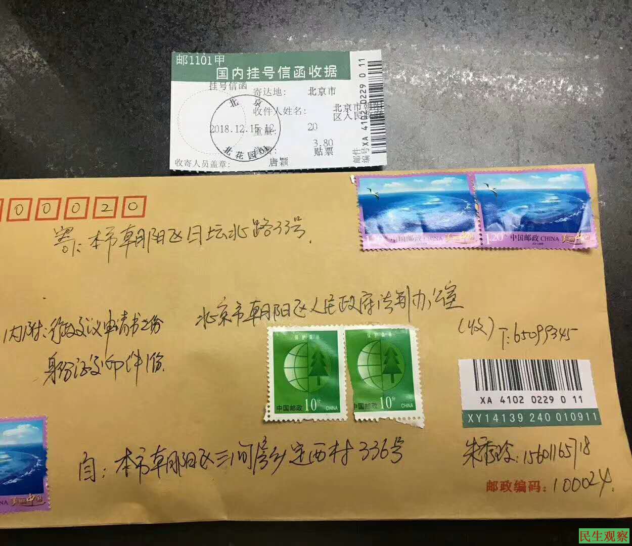 12月15日,朱秀玲给北京市朝阳区政府邮寄了行政复议申请书,依法请求: