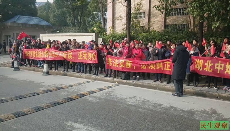 【民生观察2018年12月29日消息】2018年12月24日,湖北全省烟草买断职工维权在省烟草公司进行,参加人数200多人。这次维权200人都是湖北中烟公司的,全部来自烟厂,没有复烤厂,具体是湖北中烟武汉卷烟厂、三峡卷烟厂(原当阳卷烟厂和宜昌卷烟厂)、恩施卷烟厂(原来凤卷烟厂、利川卷烟厂,后清江卷烟厂)、广水卷烟等。