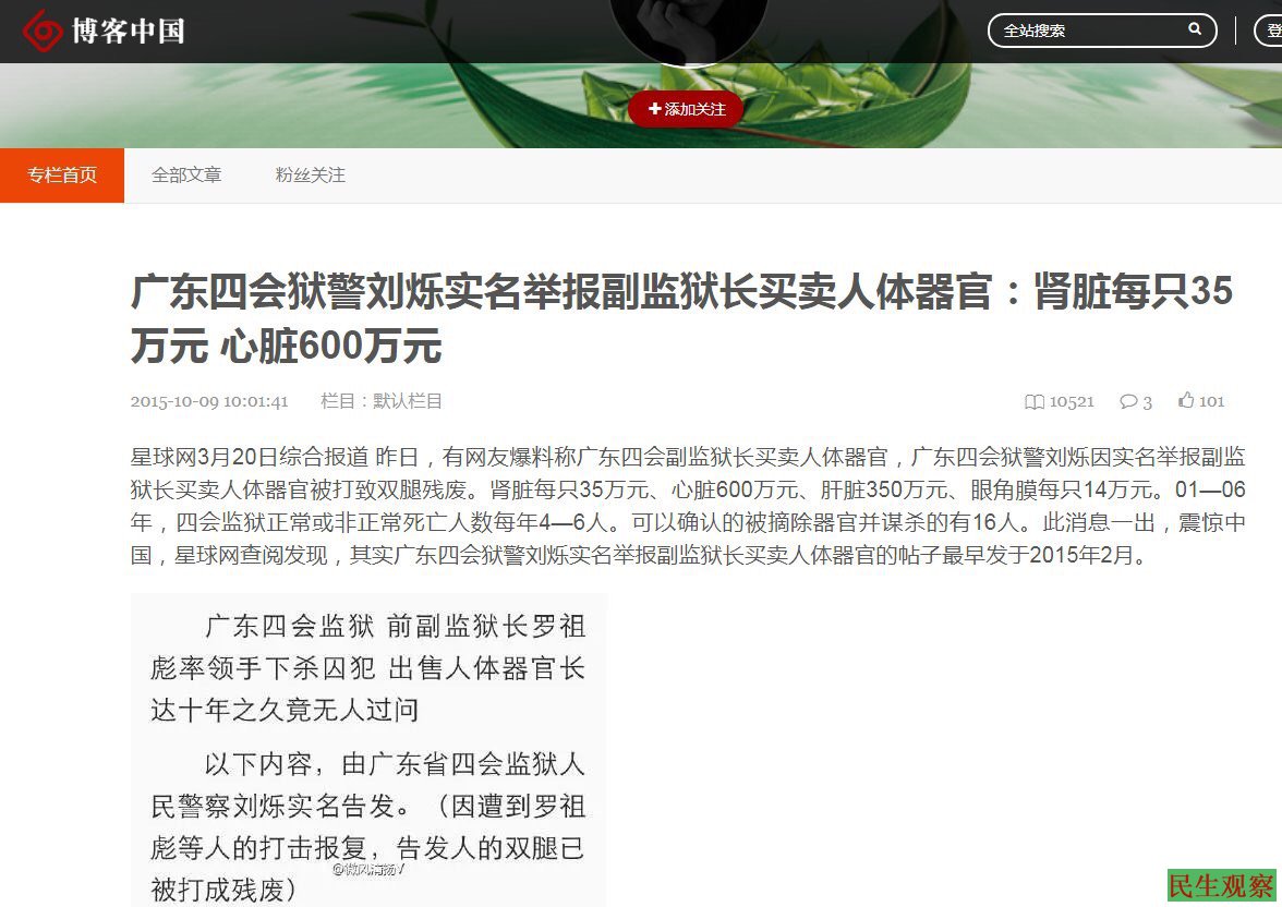 有人爆广东四会监狱杀人买卖器官 |