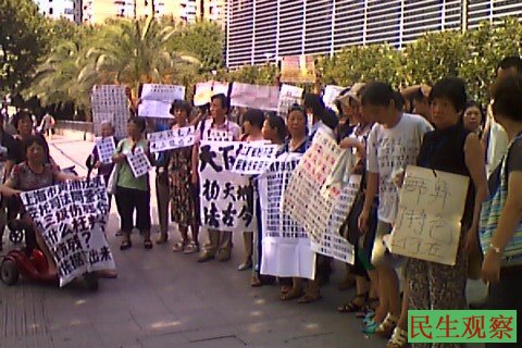 民生观察工作室2013-8-15消息:今天上午,上海高院近百人上访请愿,大家打出标语并高喊:“法官不要脸,白天跟党走,晚上跟‘鸡’走”。