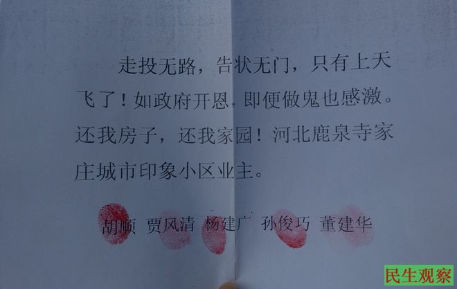 河北石家庄鹿泉市多名业主政府前跳楼讨要房子