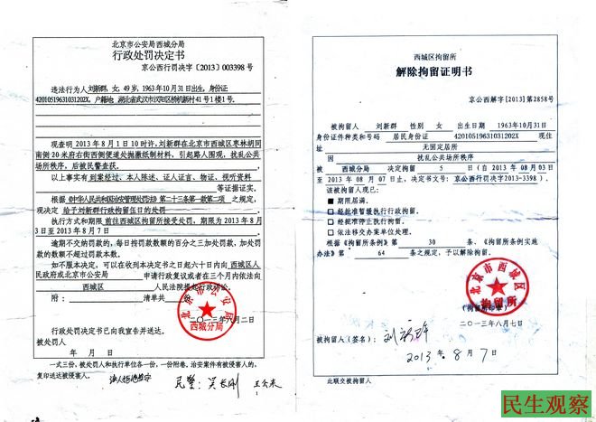 对于这样的裁定,刘新群不服,她至今仍走在上访维权路上,而上访又使得刘新群进了拘留所。