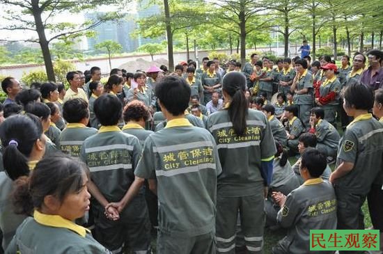 广州大学城环卫工持续罢工抗议 大学生围观声援