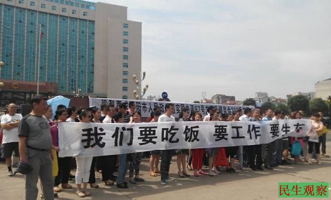 湖南省岳阳市四大银行下岗职工政府前请愿抗议