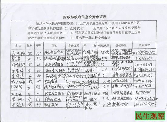 陕西西安70余访民向财政部申请信息公开
