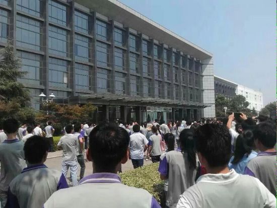 图为:苹果代工厂可胜科技(苏州)有限公司数百工人罢工现场