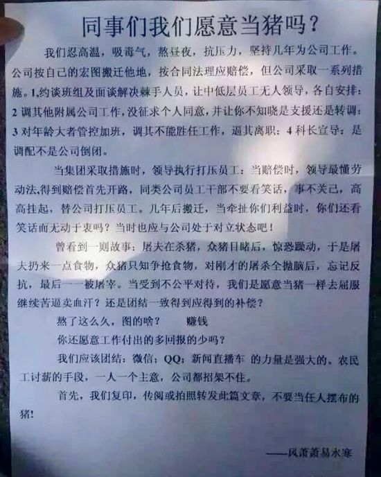 另一工人“萌妹慢慢”说:“苏州工业园区可成科技分公司可胜科技公司,搬迁拖欠工人工资不给,工人维权,警察打人,劳动局不管,市政府不闻,请问这世界上还有王法吗?”另有工人透露:次日可能会有数千人加入罢工!