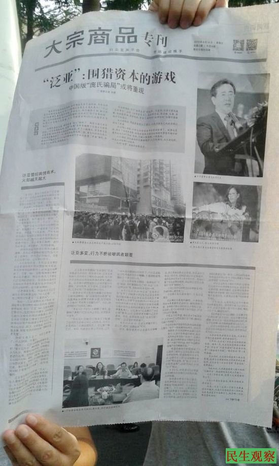 民生观察工作室2015-9-21消息:近期,有全球最大稀有金属交易所之称的云南“泛亚有色金属交易所”陷入兑付危机。据资料显示,泛亚拥有注册会员20多万人,融资超过430亿元。