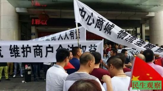 图为:商户游行抗议现场
