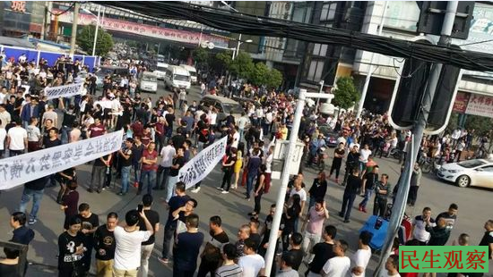 2015年10月22日,数十条黑色横幅诉求在人们自发簇拥下,自中心商城面向多福路的西大门出发走上街头,聚集的人们越来越多。由于没有组织者,更没有游行路线,不知道向哪个方向行进和聚集,貌似一盘散沙,实则是一个心愿便是倒逼政府出面,关停整顿黑物流,公布有无官商勾结黑幕。派出所派出几名警察试图通过说服让人们散开,但未有一人答应,因为他们已经不值得当局信任了。
