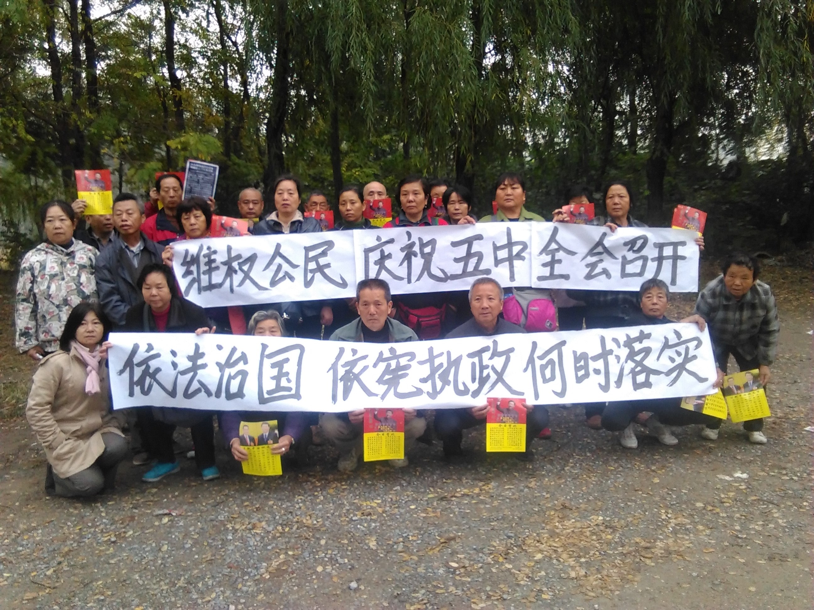 五中全会召开之际 数十访民张打横幅要求依法治国,依宪执政