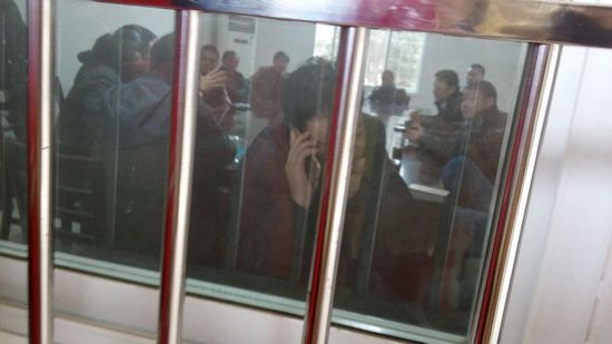 维权讨薪者到下午3半左右时情绪开始激动,因为信访局把警察叫来了,警察不允许讨薪者把各公司老板堵在信访局办公室不让出来。有一个讨薪的工人很激动的说,今天晚上死都死在一起,不给钱就不让老板出来, 他说不能放老板出去,一放老板出去就找不到人了,因以前这样的讨薪经历太多,只能把老板抓住才有可能拿到一点。