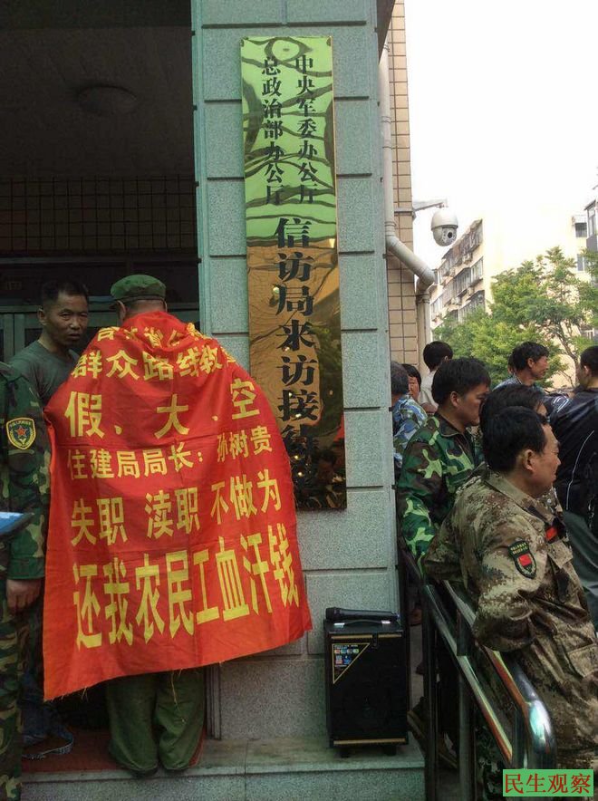 民生观察工作室2016/5/11消息:今天上午,全国部分涉军人员再次齐聚中央军委总政治部信访局信访接待,上访诉求解决有关政策和待遇问题。
