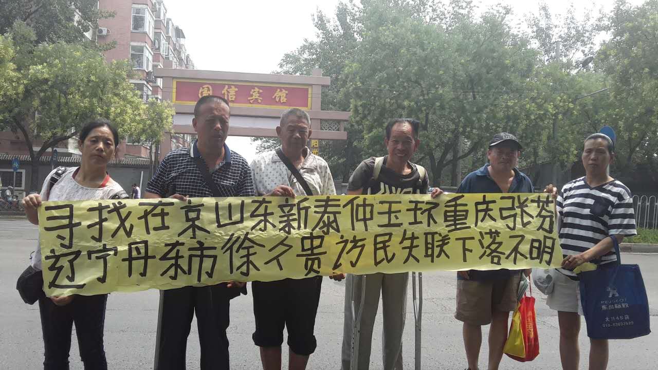 据了解,他们寻找的山东新泰市访民仲玉环,去年5月在京失联。重庆合川访民张芬,今年的6、7月份在京上访期间失联,家属也不知其下落。