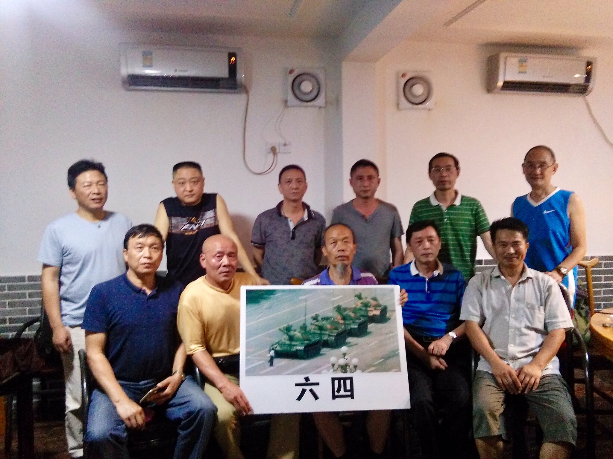 上周六(5月27日)晚上,朱承志、陈俊贤、冯军等十几位公民朋友相约举行同城饭醉活动。由于六四敏感日临近,当晚聚会以“勿忘六四”“纪念六四”为主题展开讨论,逐个发表自己对六四事件的看法和思考。聚会结束后,众人手持用坦克人图片制作成的牌子来纪念六四事件,以此强烈谴责中共的屠杀暴行以及谨记广场事件的历史教训。