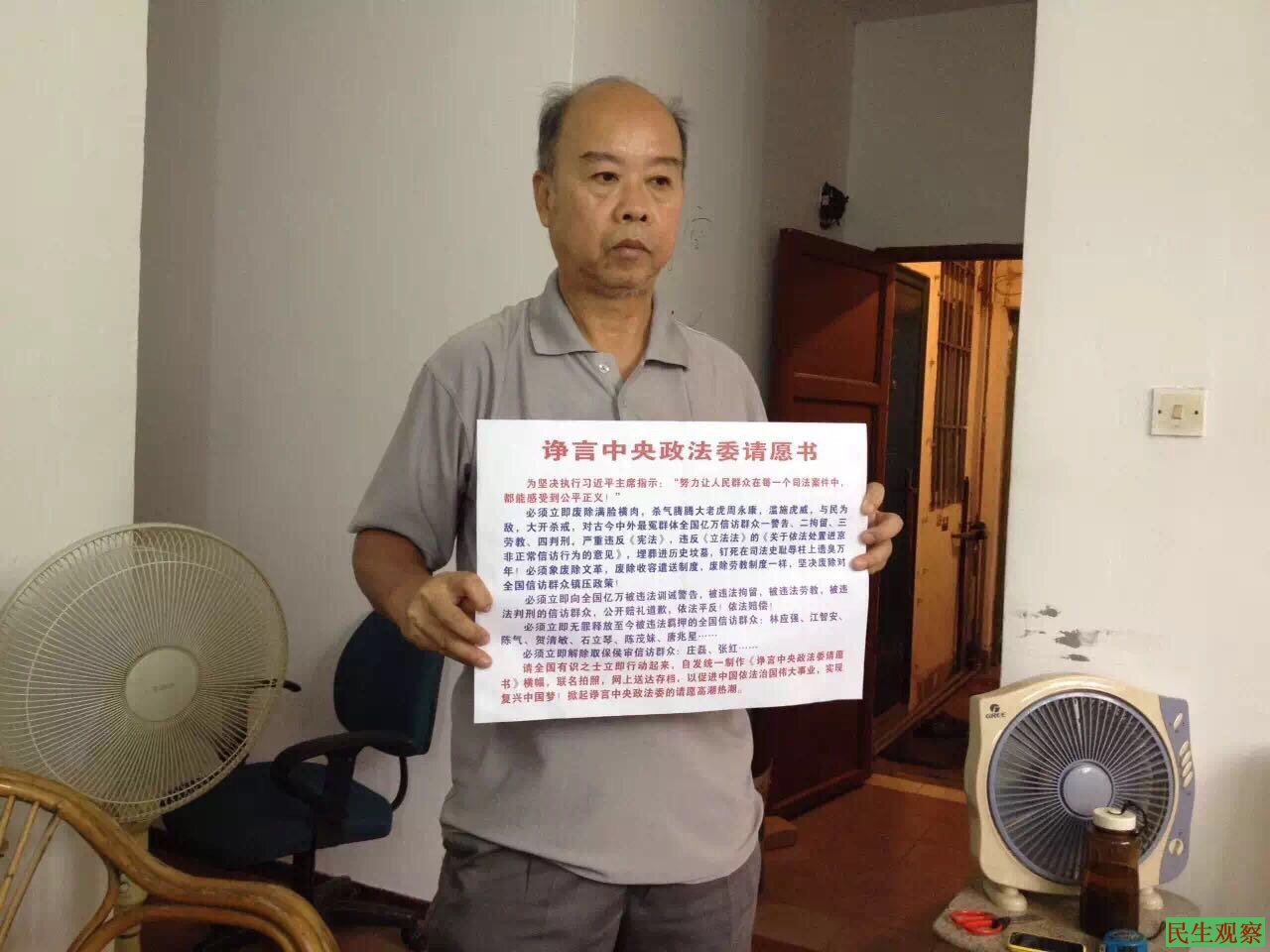 【民生观察2017年12月10日消息】本网获悉,今天“世界人权日”,同时也是福州著名人权捍卫者纪斯尊先生的生日。这天,福建福州数十公民上街举牌呼吁福州当局释放纪斯尊,并呼吁中共当局无罪释放所有在押被当局迫害的政治犯。