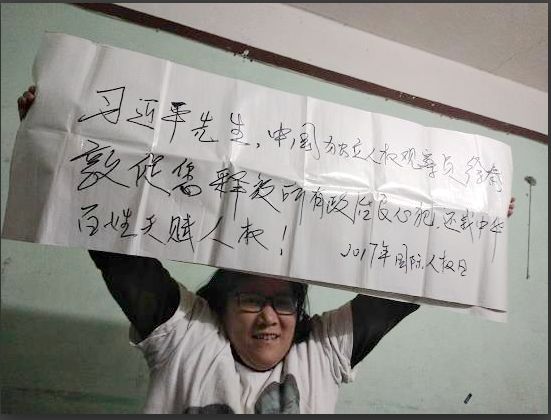 据了解,江苏高邮市维权人士徐秦,曾因医疗事故致瘫两年,后开始上访维权。在上访维权的过程中,她逐步了解到中国公民的人权到不到保障,遂于2013年前后加入了武汉异议人士秦永敏发起的“中国人权观察”,开始密切关注中国的人权状况及维权事件。2015年1月间,秦永敏被武汉警方抓捕,其妻赵素利也随后被关押失踪至今。为此,徐秦开始四处为秦永敏夫妇奔走呼吁,多次举牌要求当局无罪释放秦永敏夫妇。2017年12月29日,徐秦带着秦永敏、赵素利的亲属到武汉市公安局青山区分局信访办要求当面给予答复,但是却被数名便衣殴打至其的腰部受伤,并且随后还强行将徐秦绑架驱离武汉市。