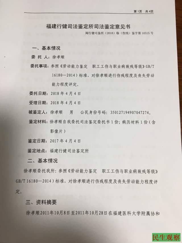 本次听证中,徐孝顺补充提供了伤残鉴定报告,福清警方关押致残的情况得到充分披露和证实。两位代理律师在听证中指出,这是一件枉法者明知错案却执意制造的冤案。尤其引起外界关注的是徐孝顺先生4月8日在广西桂林遭遇莫名车祸,手臂有粉碎性骨折。
