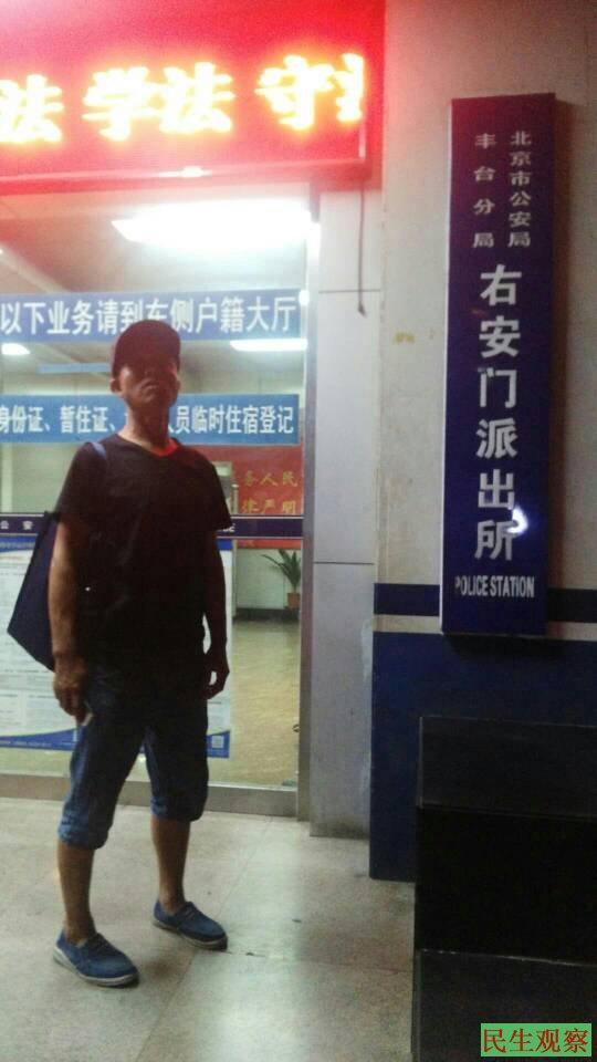 据悉,彭峰、丁元顺此次报案,右安门派出所没有给出任何接待及立案告知书。右安门派出所警察对彭峰说、丁元顺说,你们先回去,这事必须要由当地解决,如果当地不解决,你们可以再来找右安门派出所。