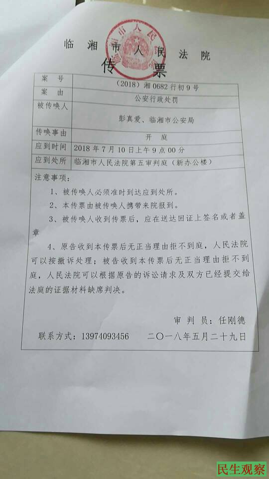 据彭真爱说,法院有意袒护临湘市公安局,开庭前她并没有拿到卷宗,导致自己在法院开庭中的陈述被动,审判长的做法明明是错误的,还辩解说“开庭通知后给你卷宗也可以”。原告要求复印卷宗法院竟然没有得到允许,这完全违背了法律程序,法律规定当事人有权复印相关卷宗。