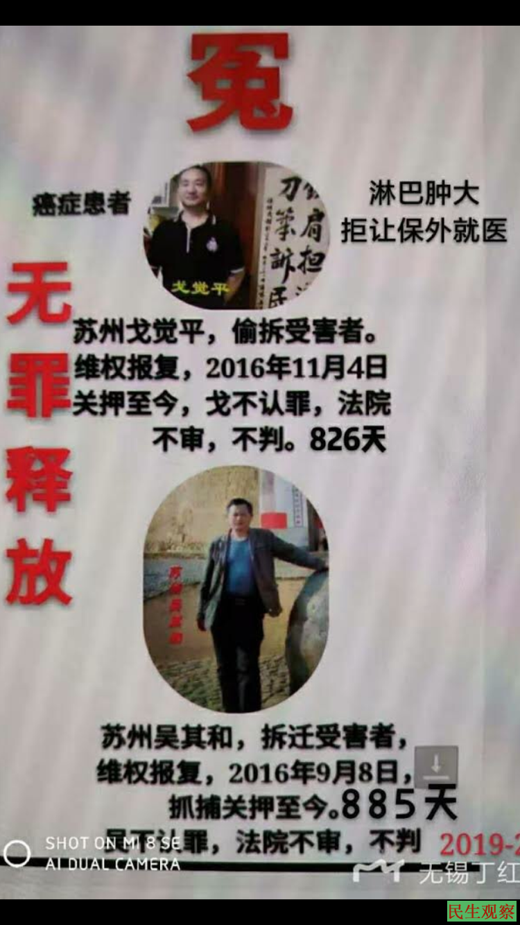 【民生观察2019年3月15日消息】2019年3月14日苏州维权人士戈觉平家属收到通知,其涉嫌煽动颠覆国家政权罪一案将于2019年3月19日、20日在苏州市中级人民法院召开庭前会议。