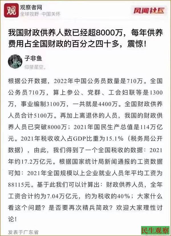 庞大官僚队伍下中国普通民众却承受着低工资、低福利与高税收的沉重负担。