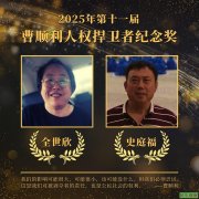 全世欣、史庭福荣获2025年“曹顺利人权捍卫者纪念奖”